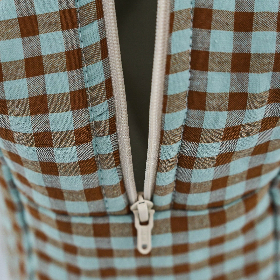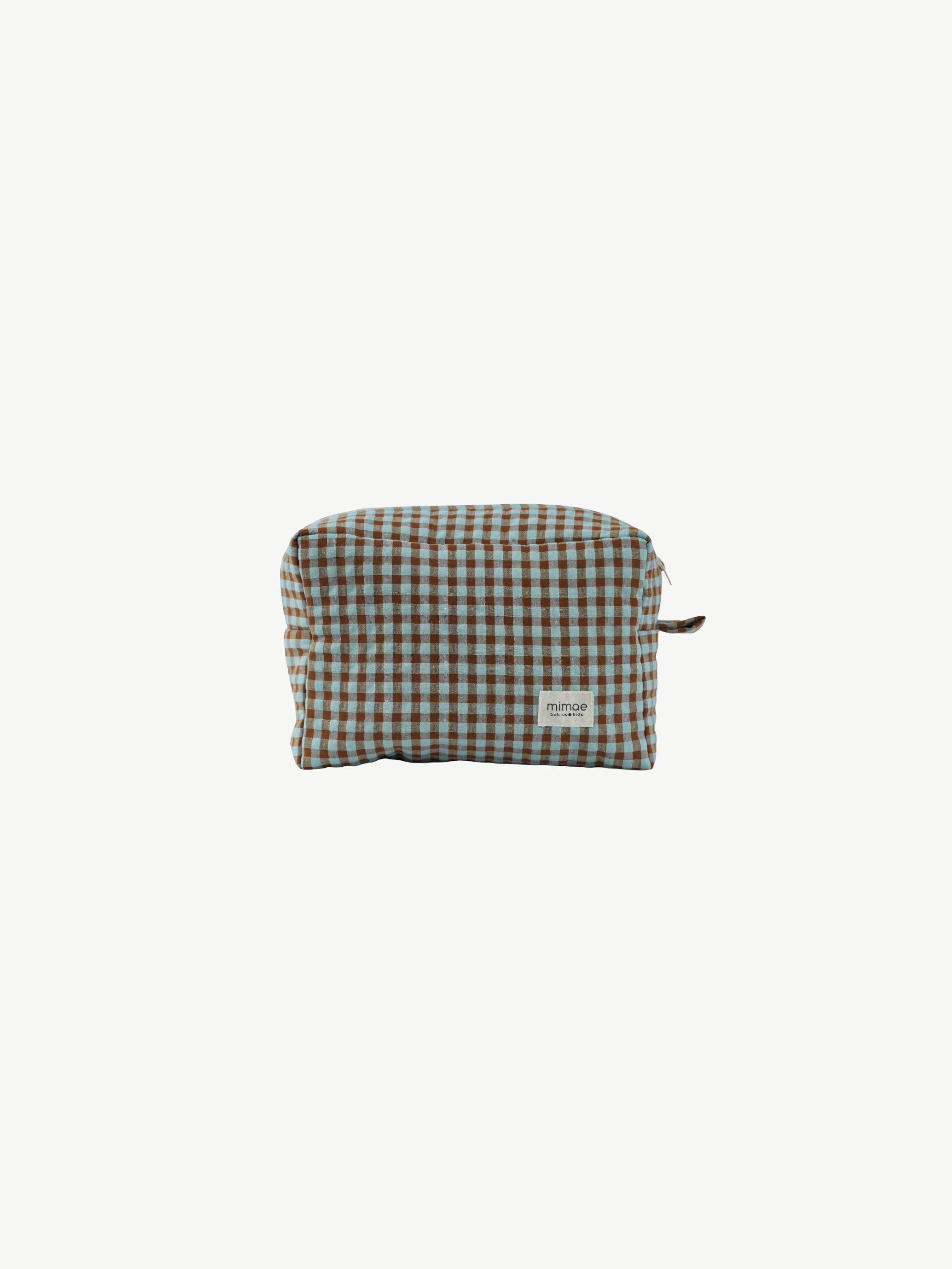 Nuestros neceseres tienen el tamaño perfecto para guardar todo lo necesario para nuestro bebe. Acolchados con una guata de grosor medio, están forrados con  algodón orgánico y se cierra con cremallera. Además entre el forro y la guata tiene un tejido impermeable para que el bolso no se empape si se derrama algún líquido. Estampado Vichy Autumn.