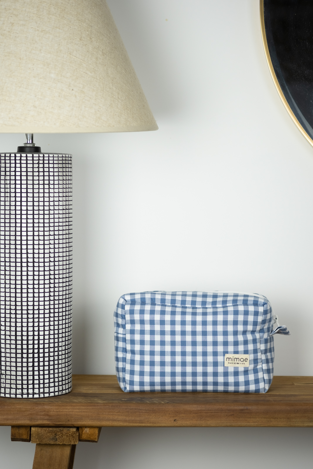 Nuestros neceseres tienen el tamaño perfecto para guardar todo lo necesario para nuestro bebe. Acolchados con una guata de grosor medio, están forrados con  algodón orgánico y se cierra con cremallera. Además entre el forro y la guata tiene un tejido impermeable para que el bolso no se empape si se derrama algún líquido. Estampado Vichy verde y blanco.