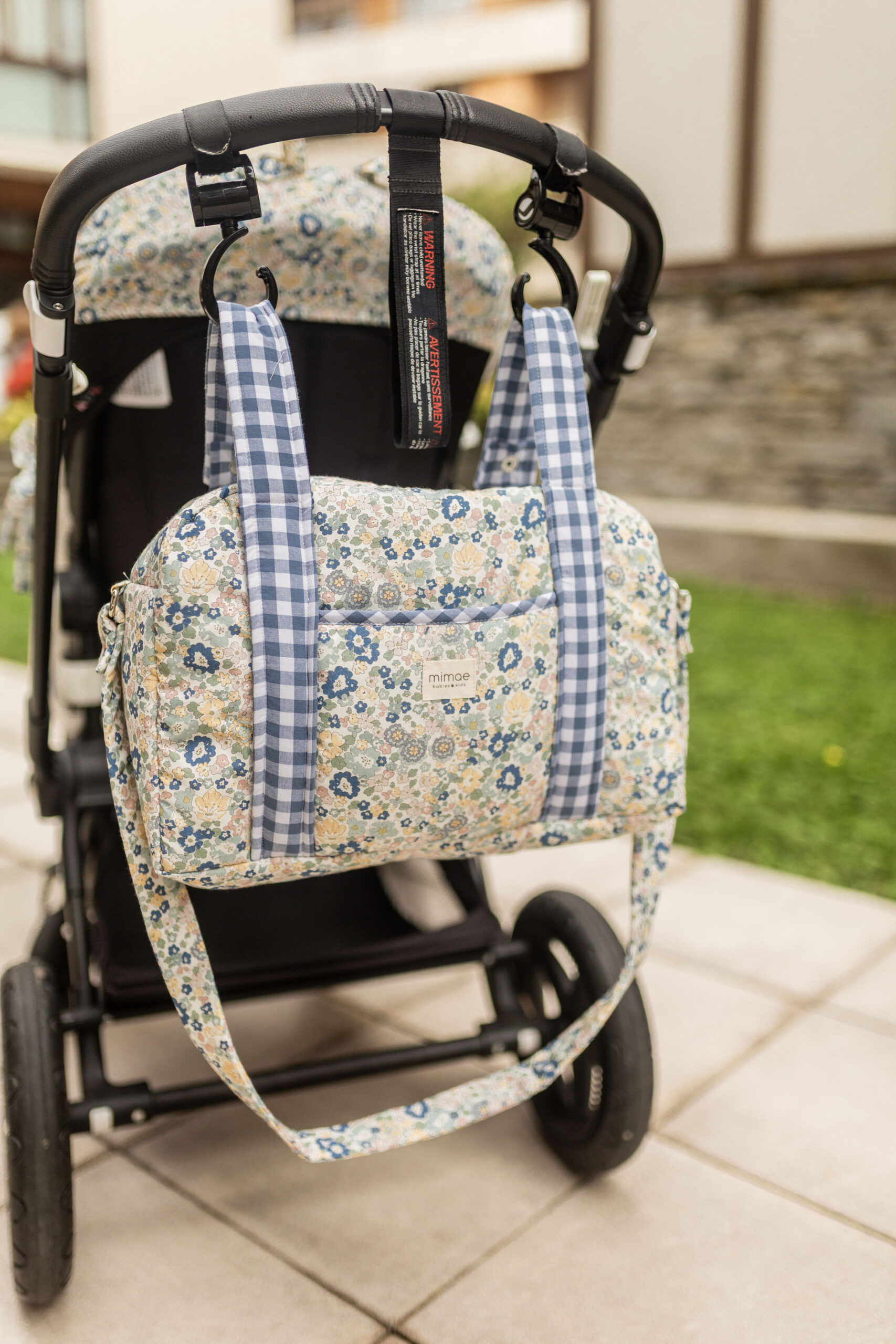 Nuestro new big es ideal para guardar todo lo necesario cuando salimos de paseo. Acolchado con una guata de grosor medio está forrado con un algodón orgánico y se cierra con cremallera. Además entre el forro y la guata tiene un tejido impermeable para que el bolso no se empape si se derrama algún líquido. Tiene un bolsillo en el exterior y otros dos en el interior para llevar todo bien organizado. Se engancha al carro mediante dos asas con corchetes. Tiene asa bandolera.
