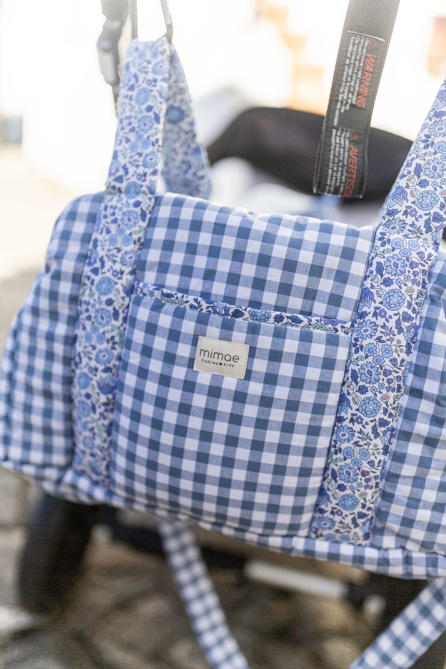 Nuestro new big es ideal para guardar todo lo necesario cuando salimos de paseo. Acolchado con una guata de grosor medio está forrado con un algodón orgánico y se cierra con cremallera. Además entre el forro y la guata tiene un tejido impermeable para que el bolso no se empape si se derrama algún líquido. Tiene un bolsillo en el exterior y otros dos en el interior para llevar todo bien organizado. Se engancha al carro mediante dos asas con corchetes. Tiene asa bandolera.