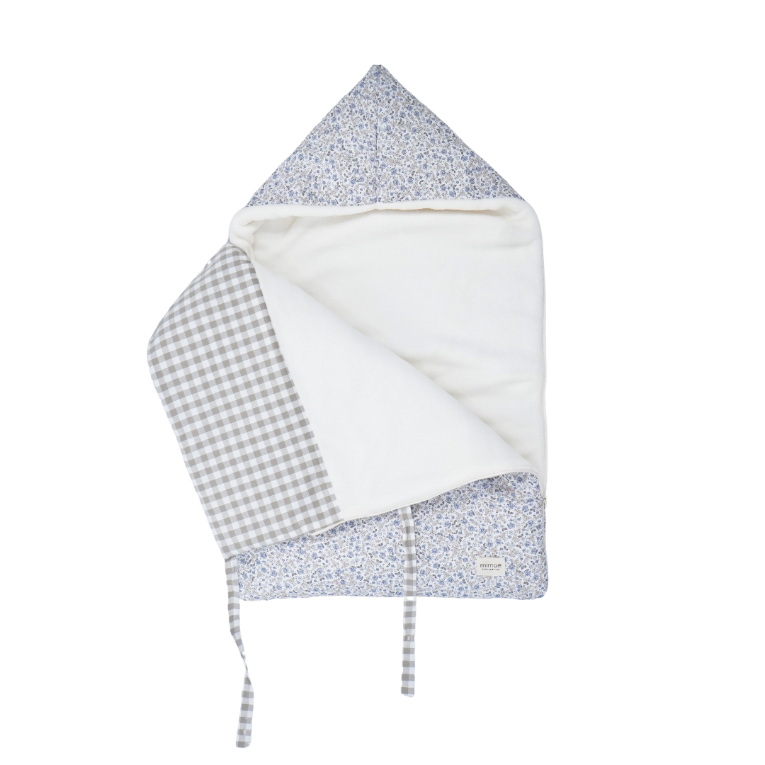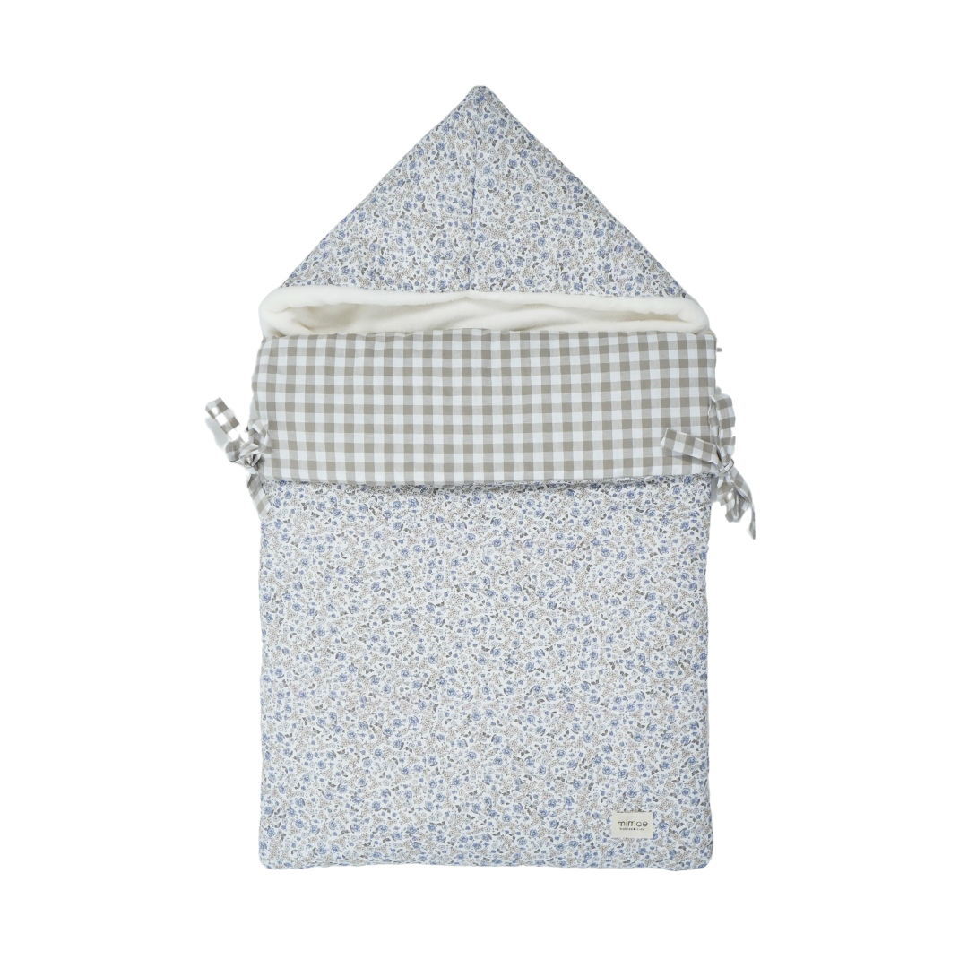 Saco de Capazo de invierno Liberty Luken+vichy beige, forrado con suave pelo tipo polar crudo. Tiene cremallera en el lateral par poder meter facilmente al bebe.
