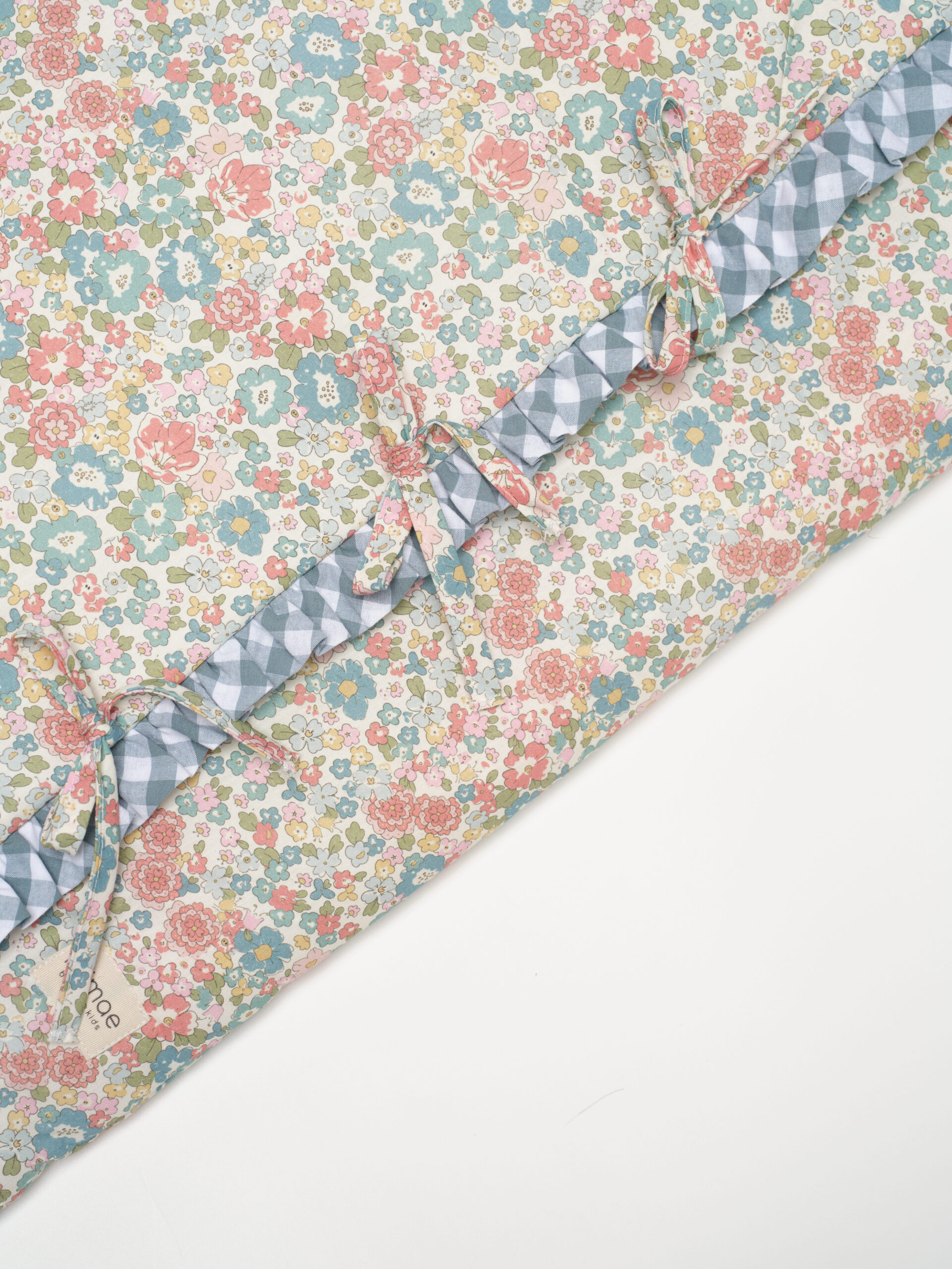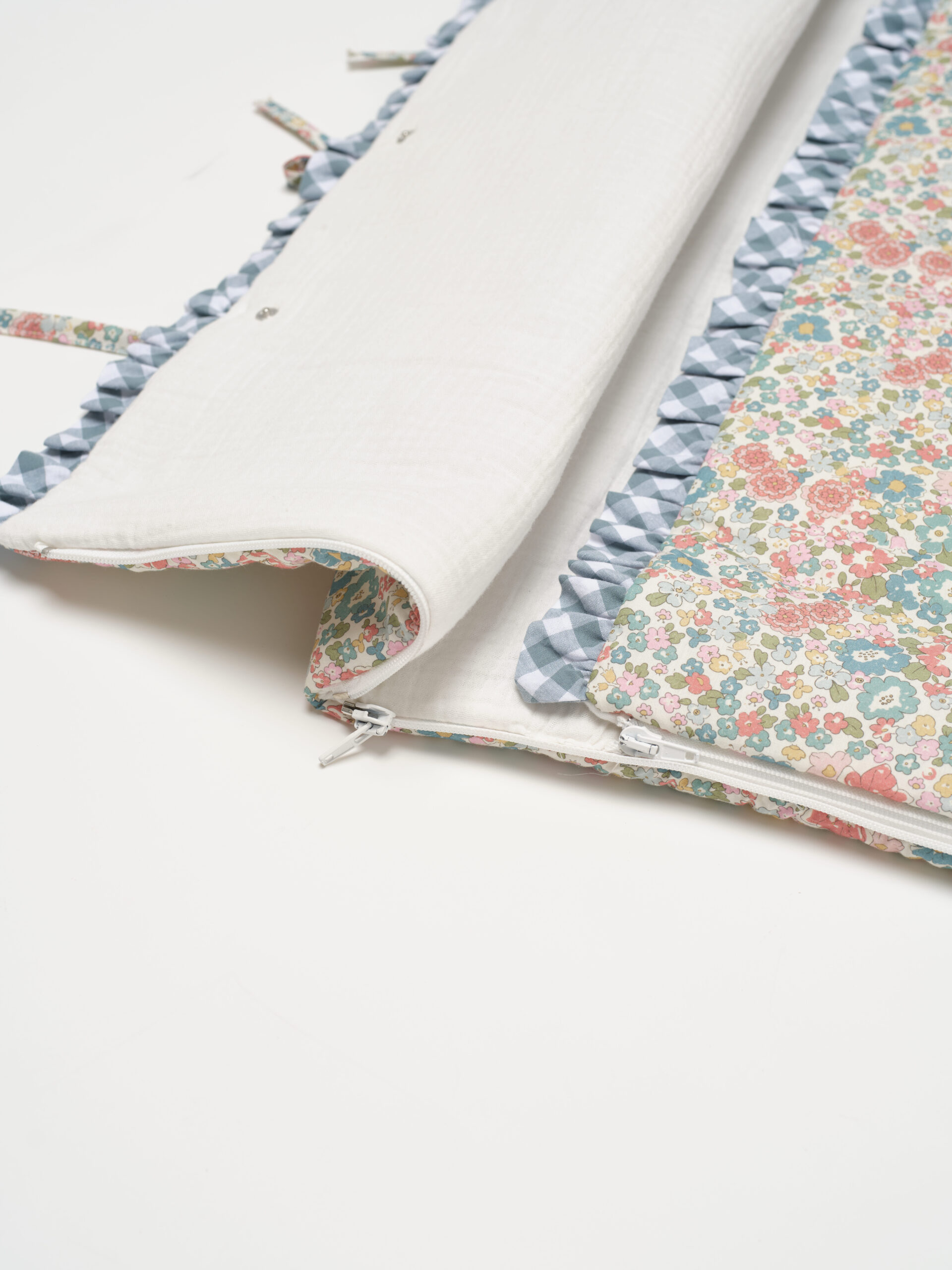 Saco capazo de pelito Alize con volante vichy menta.  Ideal para los primeros paseos en el capazo y para  arropar a tu bebé en la cuna o cuando lo tengas en los brazos. Se puede utilizar como arrullo o también se puede utilizar como mantita. Recomendaciones de lavado: Se puede lavar a mano o a máquina. Para lavadora elegir programa delicado con agua fría máx 30º y centrifugado suave. No utilizar secadora.