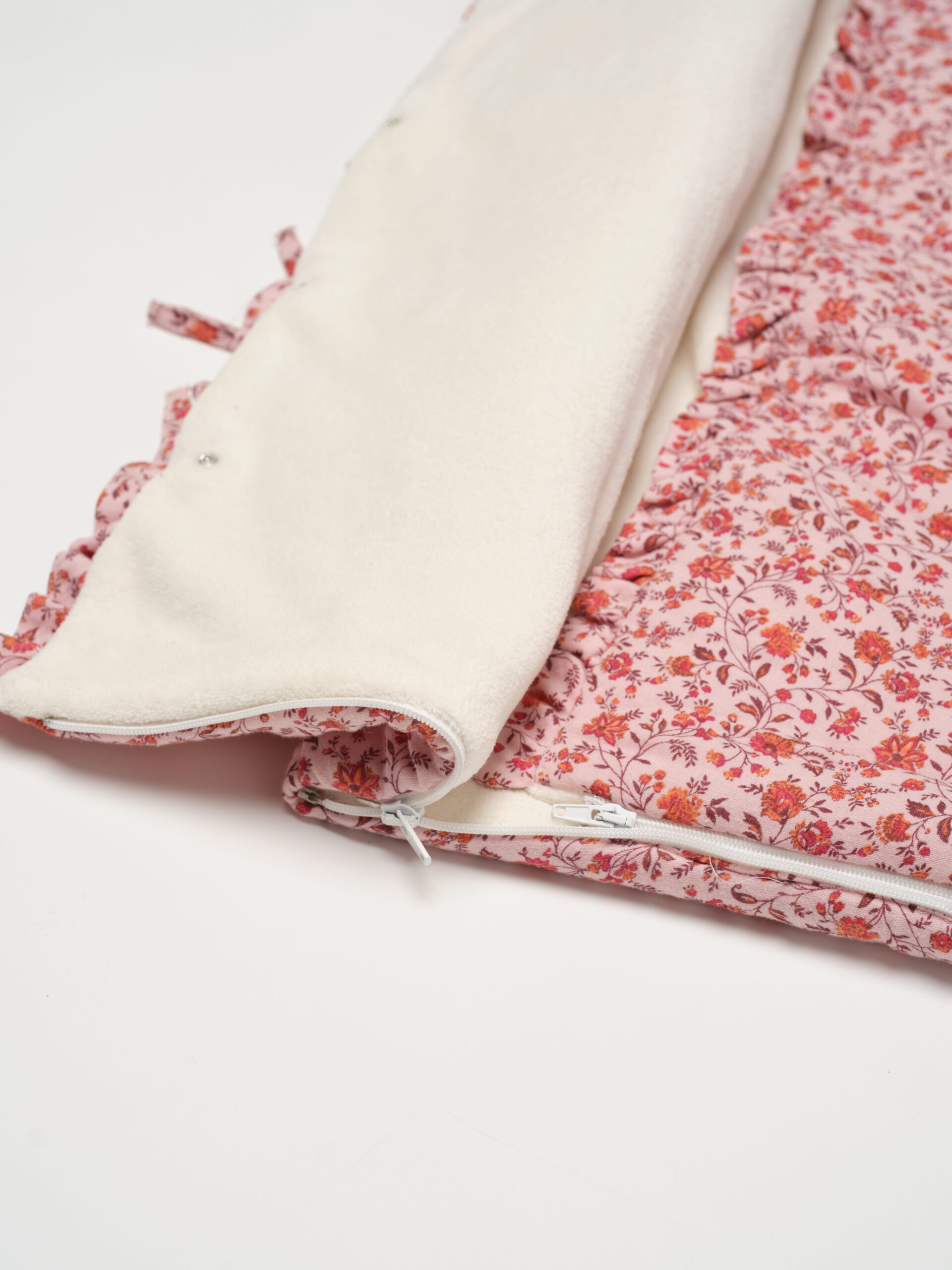 Saco capazo de pelito Flora. Ideal para los primeros paseos en el capazo y para  arropar a tu bebé en la cuna o cuando lo tengas en los brazos. Se puede utilizar como arrullo o también se puede utilizar como mantita. Recomendaciones de lavado: Se puede lavar a mano o a máquina. Para lavadora elegir programa delicado con agua fría máx 30º y centrifugado suave. No utilizar secadora.