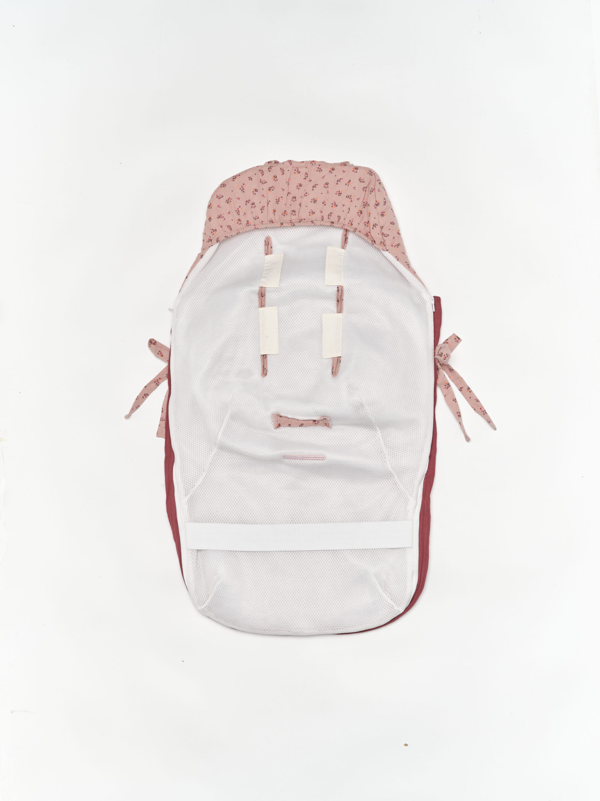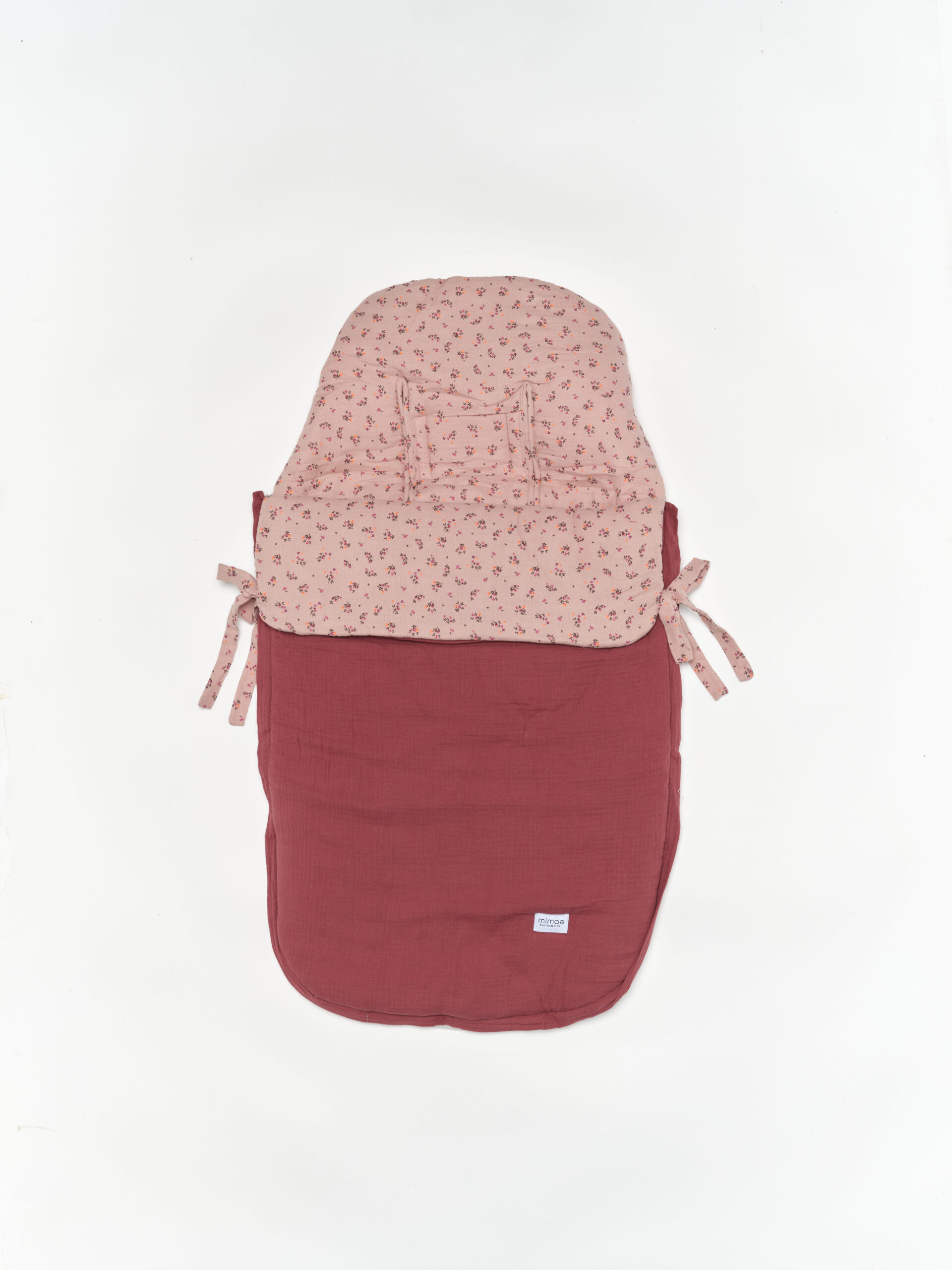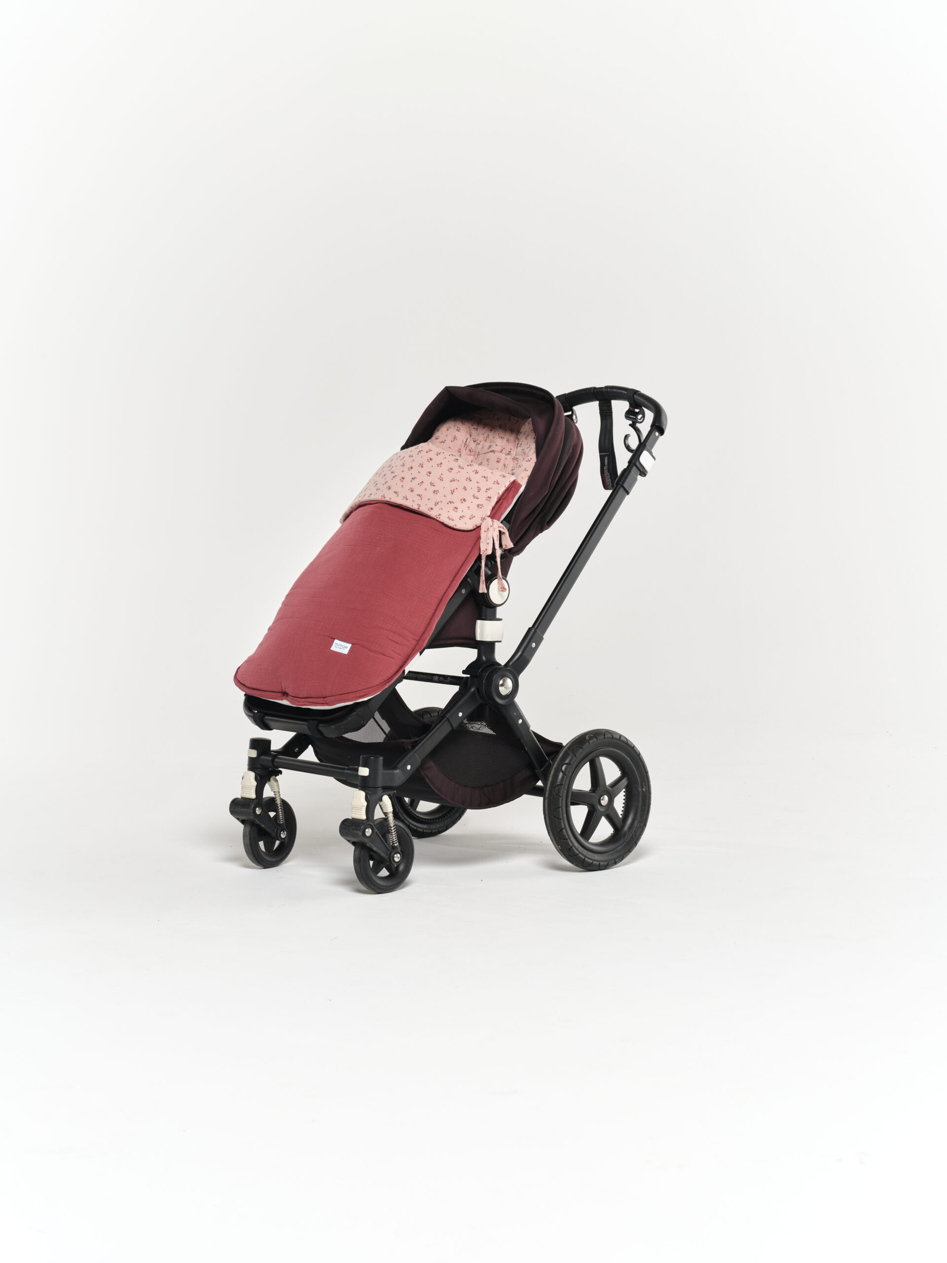 Saco universal para silla de paseo. Acolchado con una guata efecto pluma, el saco es totalmente extraíble mediante 2 cremalleras, para que pueda usarse como colchoneta los meses más cálidos. Parte trasera en Maya 3D, un tejido acolchado y transpirable. Agarre mediante gomas, vueltas y lazos. Confeccionado en estampado Fauna y bambula granate.