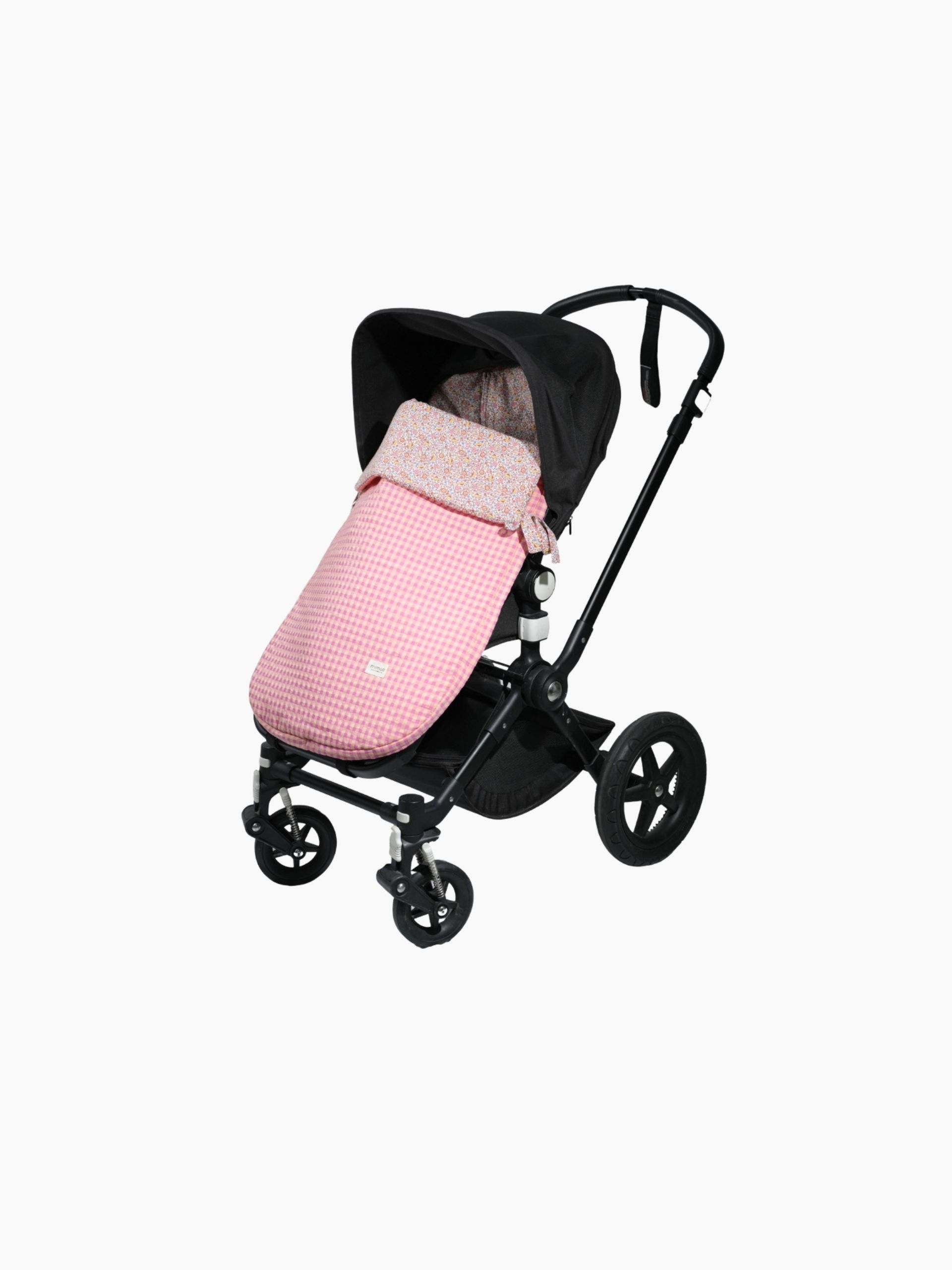 Saco universal para silla de paseo. Acolchado con una guata efecto pluma, el saco es totalmente extraíble mediante 2 cremalleras, para que pueda usarse como colchoneta los meses más cálidos. Parte trasera en Maya 3D, un tejido acolchado y transpirable. Agarre mediante gomas, vueltas y lazos. Confeccionado en estampado de flores y vichy.