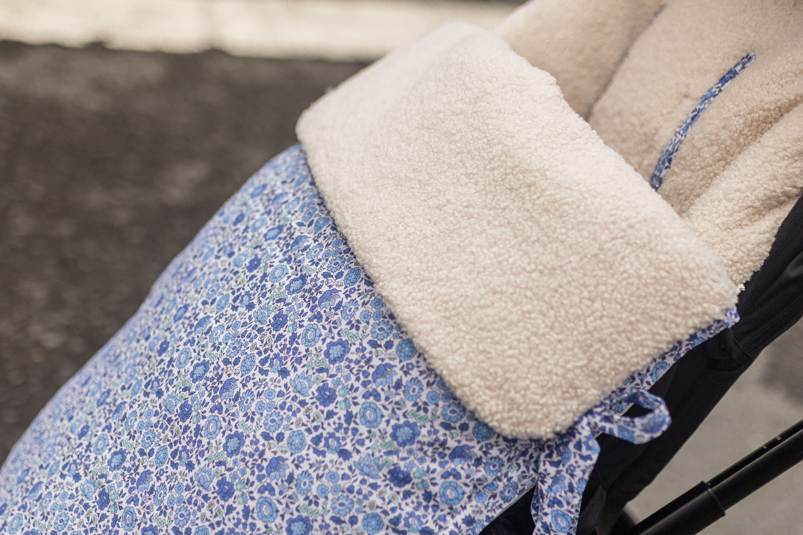 Saco universal para silla de paseo de invierno. Acolchado con una guata doble efecto pluma con un tejido de borrego super suave y abrigado, perfecto para los meses mas fríos. El saco es totalmente extraíble mediante 2 cremalleras, para que pueda usarse como colchoneta los meses más cálidos. Parte trasera en Maya 3D, un tejido acolchado y transpirable. Agarre mediante gomas, vueltas y lazos. Confeccionado en tejido Azuli y borrego crudo.