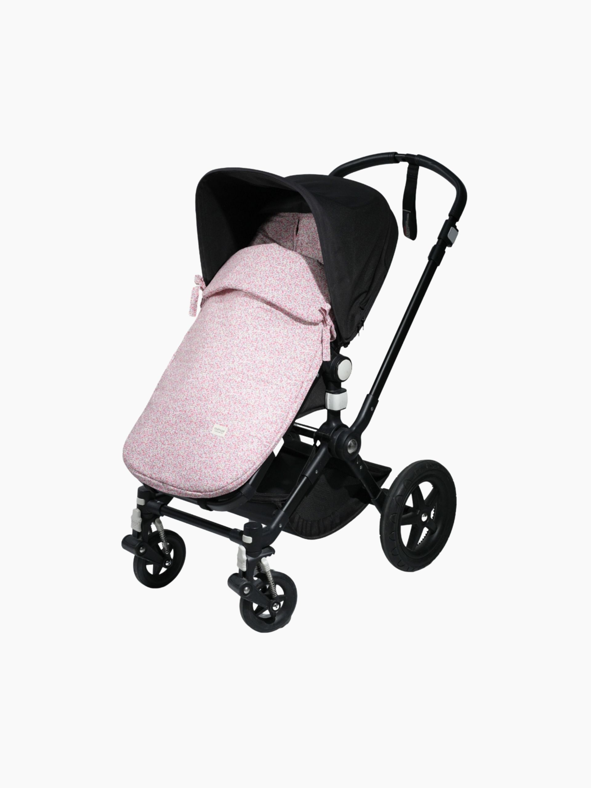 Saco universal para silla de paseo. Acolchado con una guata efecto pluma, el saco es totalmente extraíble mediante 2 cremalleras, para que pueda usarse como colchoneta los meses más cálidos. Parte trasera en Maya 3D, un tejido acolchado y transpirable. Agarre mediante gomas, vueltas y lazos. Confeccionado en estampado de flores Candela.