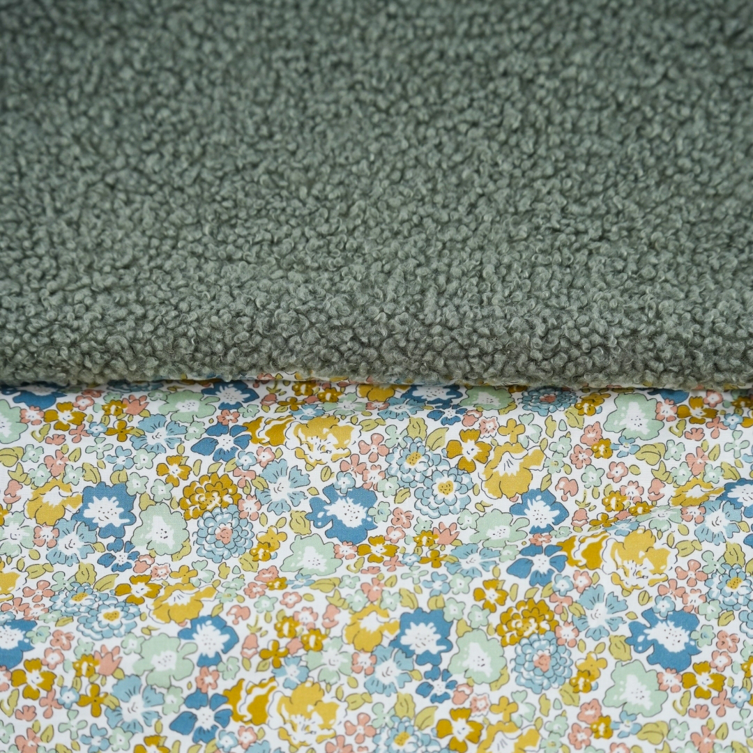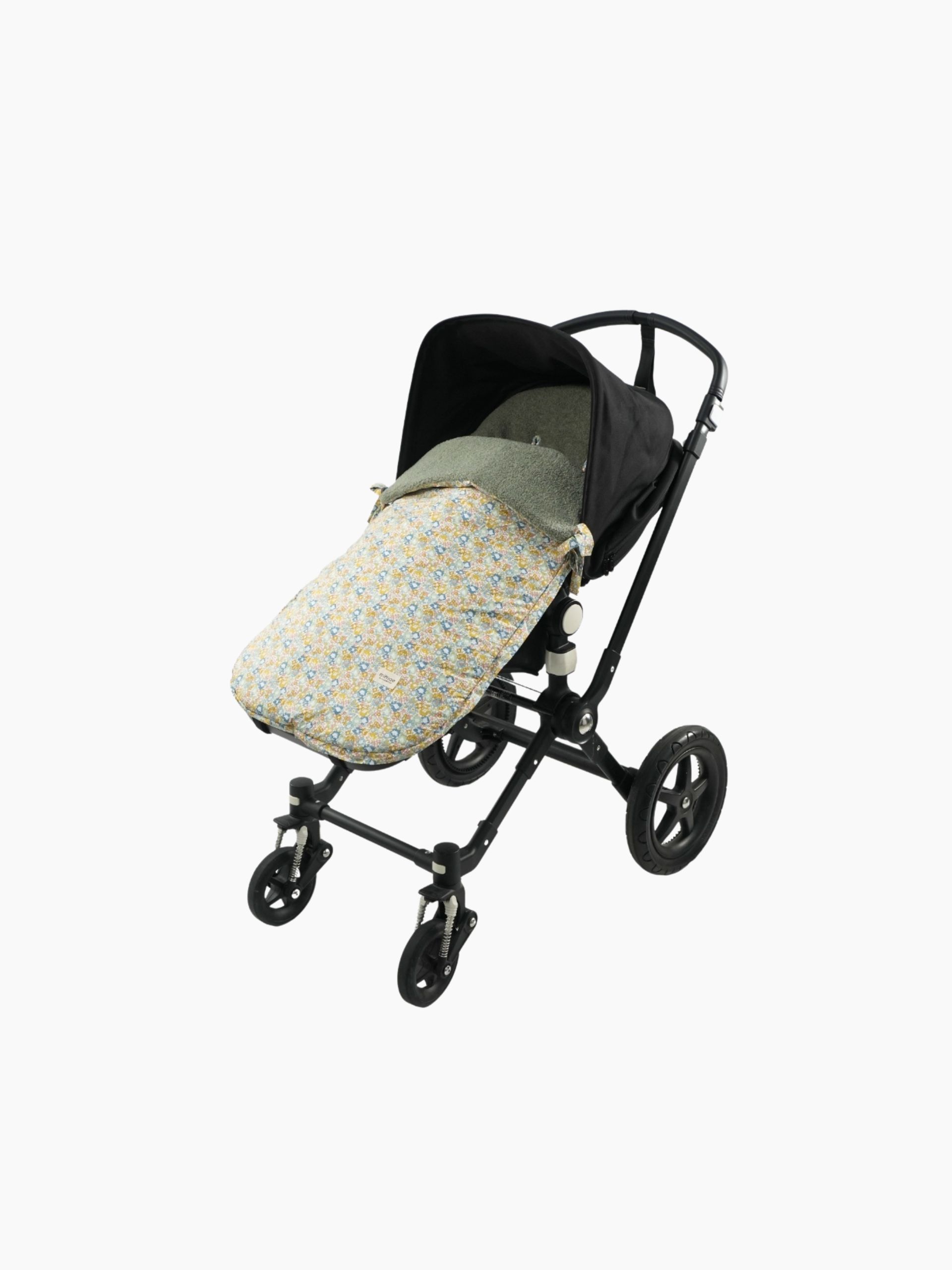 Saco universal para silla de paseo de invierno. Acolchado con una guata doble efecto pluma con un tejido de borrego super suave y abrigado, perfecto para los meses mas fríos. El saco es totalmente extraíble mediante 2 cremalleras. Parte trasera en Maya 3D, un tejido acolchado y transpirable. Agarre mediante gomas, vueltas y lazos. Confeccionado en Liberty Elene y borrego verde