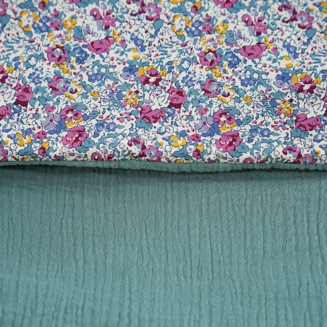 Saco universal para silla de paseo. Acolchado con una guata efecto pluma, el saco es totalmente extraible mediante 2 cremalleras, para que pueda usarse como colchoneta los meses más cálidos. Parte trasera en Maya 3D, un tejido acolchado y transpirable. Agarre mediante gomas, vueltas y lazos.Confeccionado en estampado Matilda y Bambula Menta