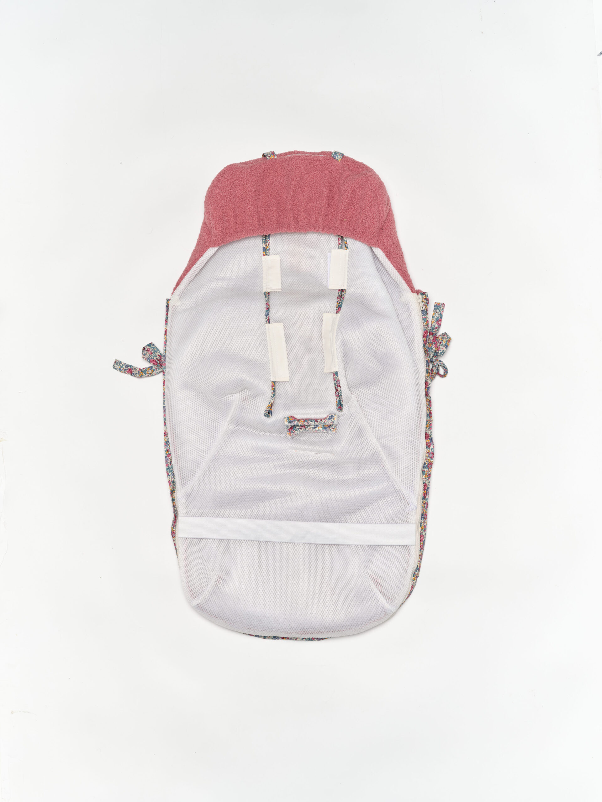 Saco universal para silla de paseo de invierno. Acolchado con una guata doble efecto pluma con un tejido de borrego super suave y abrigado, perfecto para los meses mas fríos. El saco es totalmente extraíble mediante 2 cremalleras, para que pueda usarse como colchoneta los meses más cálidos. Parte trasera en Maya 3D, un tejido acolchado y transpirable. Agarre mediante gomas, vueltas y lazos. Confeccionado en tejido Matilda y borrego rosa.