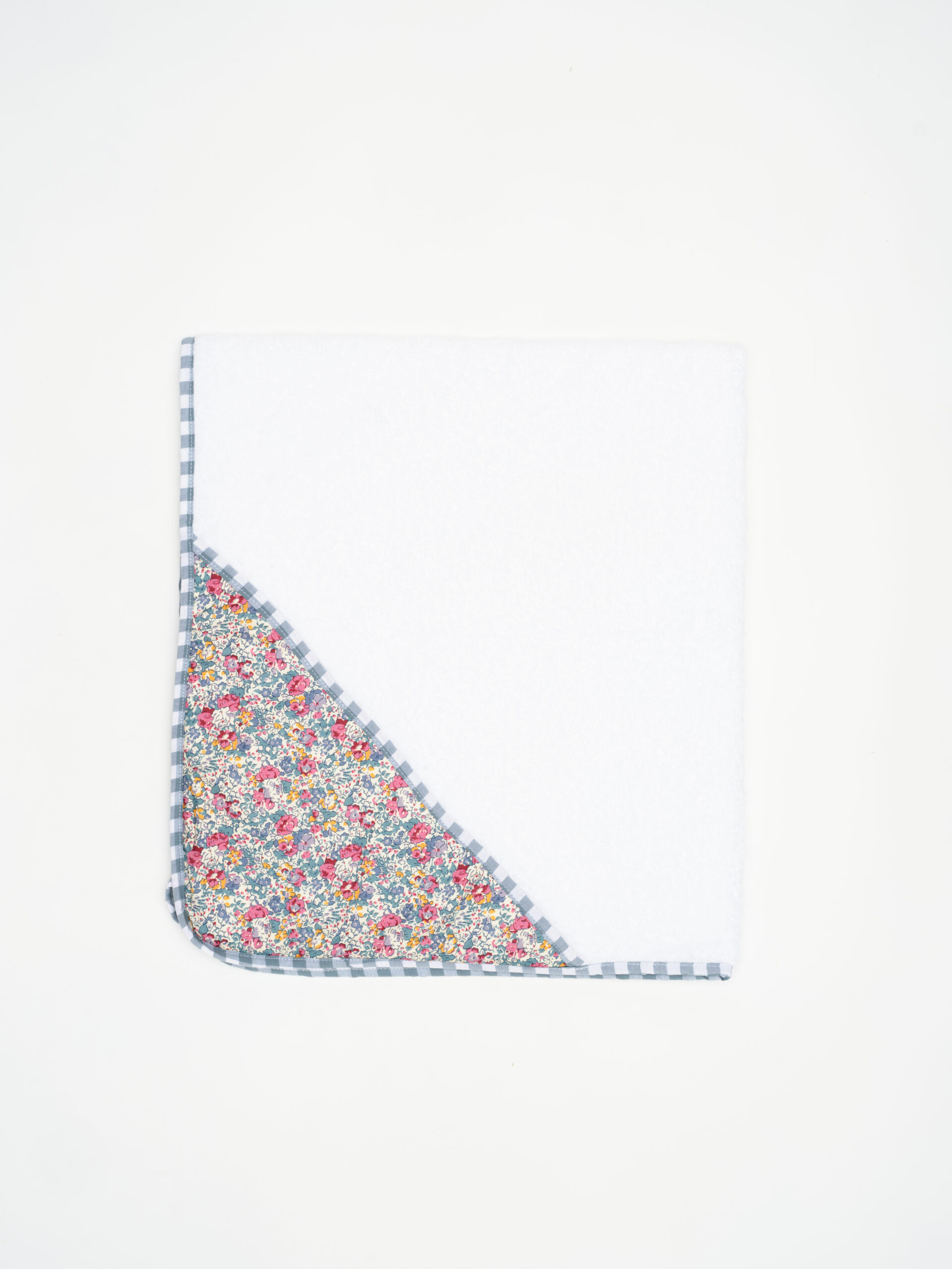 Capa de baño confeccionado con rizo de toalla 100% algodón orgánico hipoalergénico. Tiene tira trasera para poder colgar la toalla. Tejido Matilda.