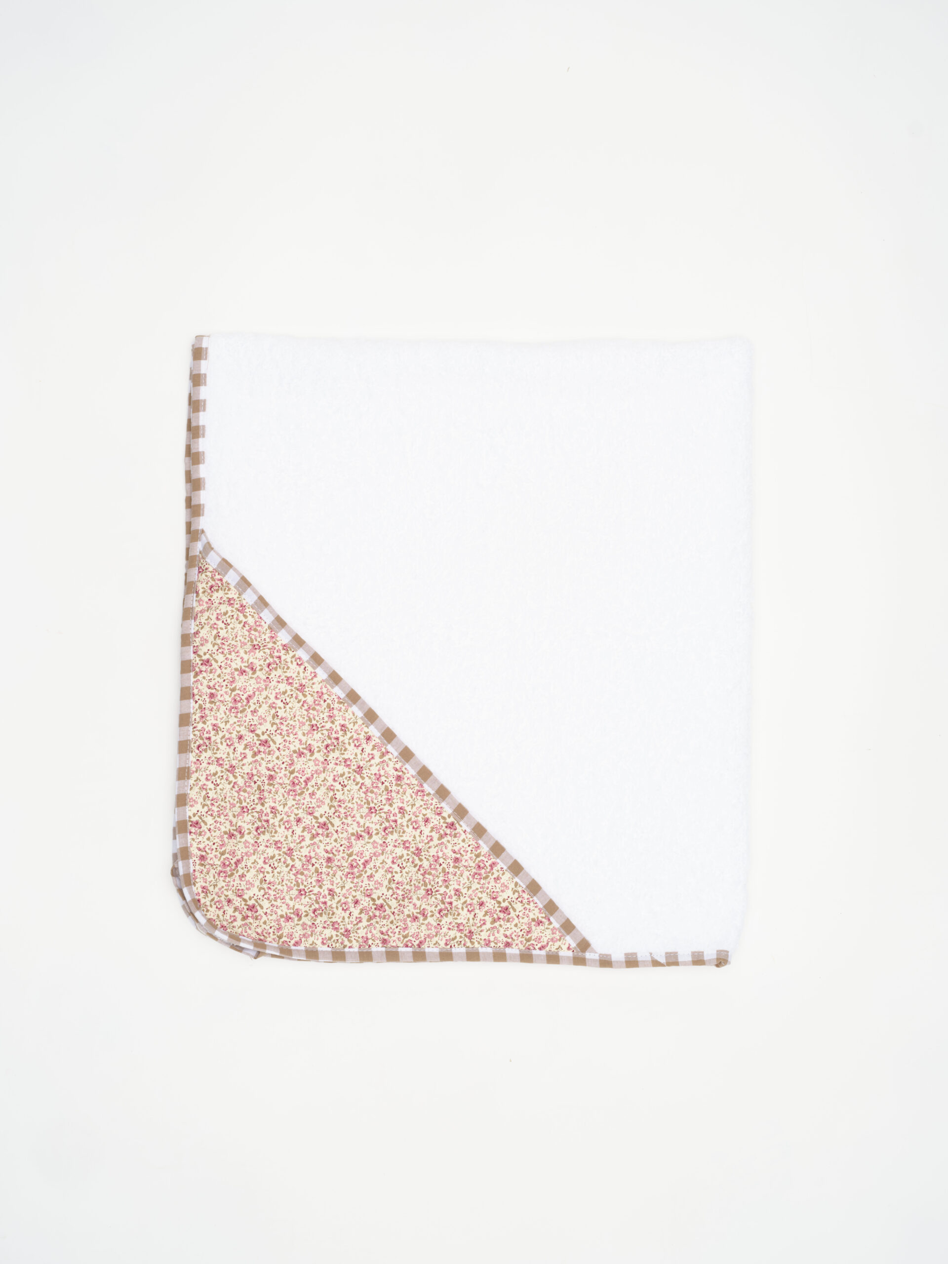 Toalla con capucha para bebé  tejido Nikole y bies beige.