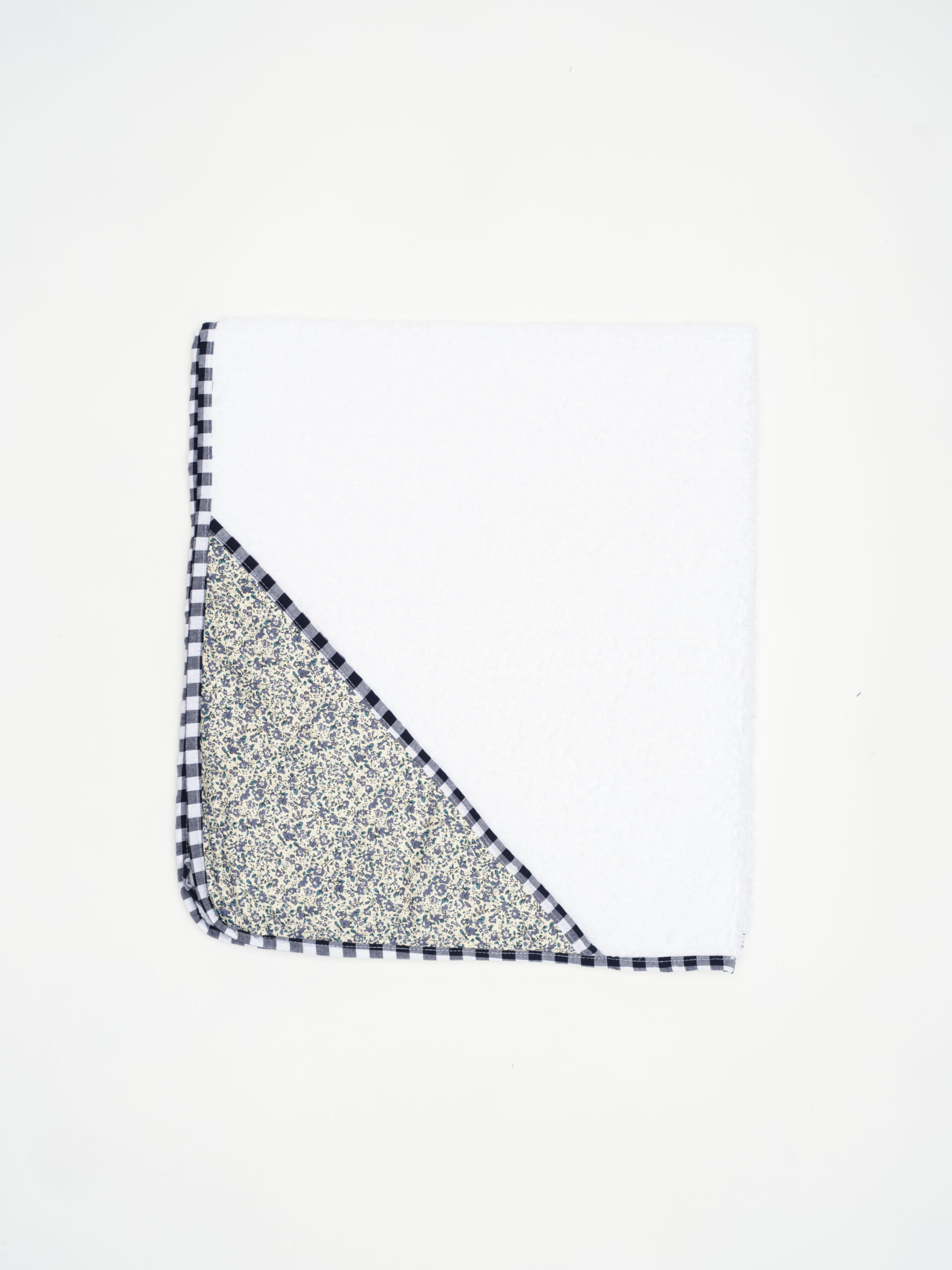 Suave, absorbente y delicada con la piel del bebé. Confeccionada en tejido Paul, rematada con bies de vichy navy y capucha integrada para mantener la cabecita seca y abrigada. Incluye tira para colgar. Perfecta para los momentos de baño.